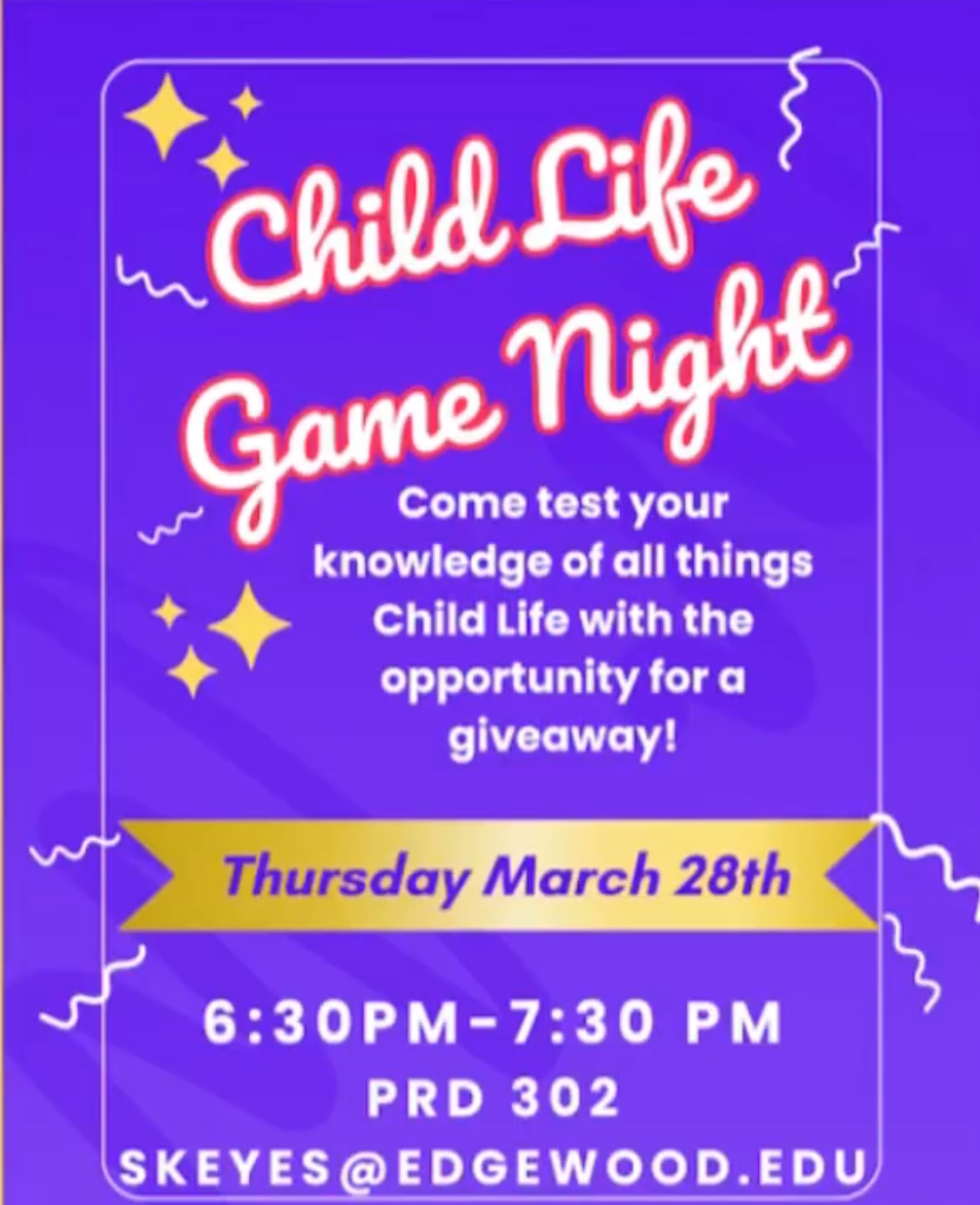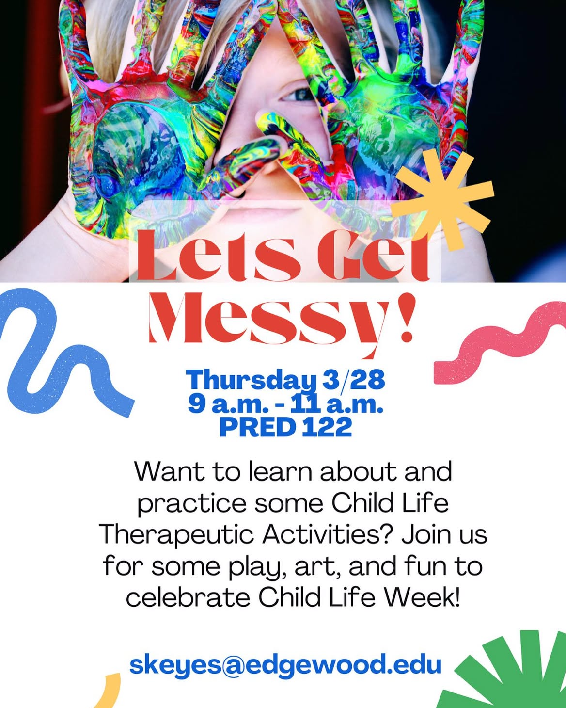 We organized an event aimed at educating the Edgewood College community about the role of play in Child Life practice. Through a variety of interactive stations, we demonstrated how Child Life Specialists use play as a therapeutic tool to support pediatric patients. Activities were intentionally designed to promote normalization, teach deep breathing and coping strategies, and introduce medical play. This event served to raise awareness of the Child Life profession while highlighting the developmental and emotional benefits of play in healthcare settings.